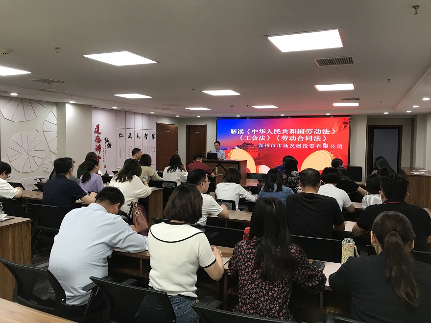 根據(jù)《2021年鄭州市普法依法治理工作要點(diǎn)》文件精神和市國(guó)資委關(guān)于普法教育工作要求,為扎實(shí)推進(jìn)普法依法治理工作,為“八五”普法開好局、起好步,5月13日下午,鄭州市市場(chǎng)發(fā)展投資有限公司組織開展《中華人民共和國(guó)勞動(dòng)法》《工會(huì)法》《勞動(dòng)合同法》等法律知識(shí)講座,公司本部全體人員、各子公司中層以上管理人員及法務(wù)部、經(jīng)營(yíng)部工作人員參加培訓(xùn)。